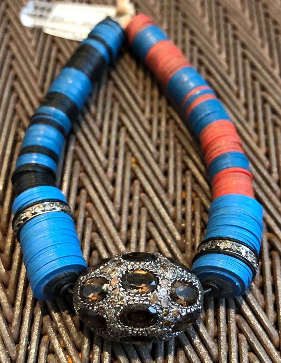 Jolie Altman is a jewelry designer, artist, and folk art collector living in Birmingham, Michigan. She handcrafts each piece of jewelry personally and travels extensively all over the world for inspiration. Using African beads, precious and semi-precious gems, Bali silver, brass, bone and pearls...her bracelets and necklaces visually pop. Jolie's designs can be dressed up or down and "wow" when multiple are worn together or standing on their own. Her eclectic vision brings out the beauty of these objects in unexpected settings.
