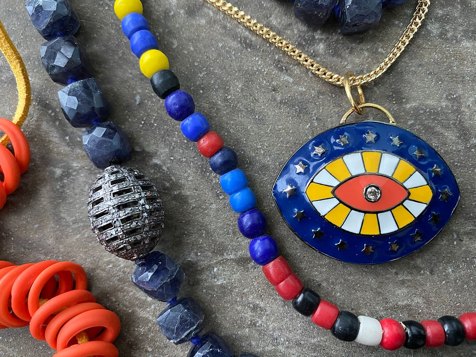 Jolie Altman is a jewelry designer, artist, and folk art collector living in Birmingham, Michigan. She handcrafts each piece of jewelry personally and travels extensively all over the world for inspiration. Using African beads, precious and semi-precious gems, Bali silver, brass, bone and pearls...her bracelets and necklaces visually pop. Jolie's designs can be dressed up or down and "wow" when multiple are worn together or standing on their own. Her eclectic vision brings out the beauty of these objects in unexpected settings.